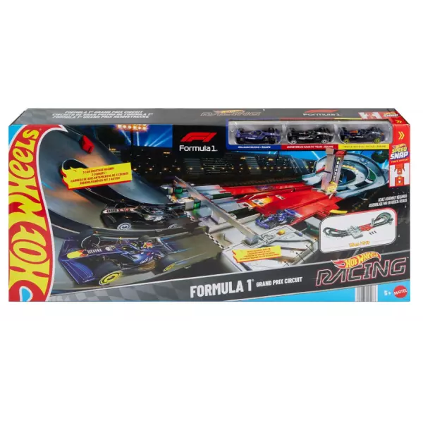 Você pode recriar a emoção das corridas do Grande Prêmio de Fórmula 1® com este conjunto de pista da Hot Wheels. No modo de corrida, o contador de voltas acompanha os carros enquanto eles passam pelo acelerador de três pistas e aceleram em curvas dinâmicas e mudanças de elevação, exatamente como nas ruas da cidade real. As crianças podem acionar o desvio interativo DRS que permite que os veículos ultrapassem o líder em uma curva - o vencedor será o primeiro a chegar ao portão de chegada.
