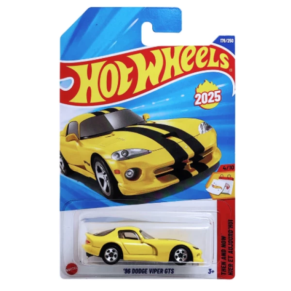 Adicione a velocidade e o legado da engenharia americana à sua coleção com o Hot Wheels Dodge 176/250 - Then And Now - '96 Dodge Viper GTS. Uma miniatura que representa a emoção de dirigir e a atemporalidade de um verdadeiro ícone automotivo!