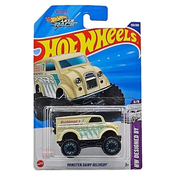 A miniatura Hot Wheels Monster Dairy Delivery - HW Designed By - Netflix Let's Race é um veículo monstruoso e divertido, inspirado na série da Netflix. Com design robusto e detalhes únicos, esta miniatura é perfeita para os fãs de Hot Wheels e da série Let's Race.