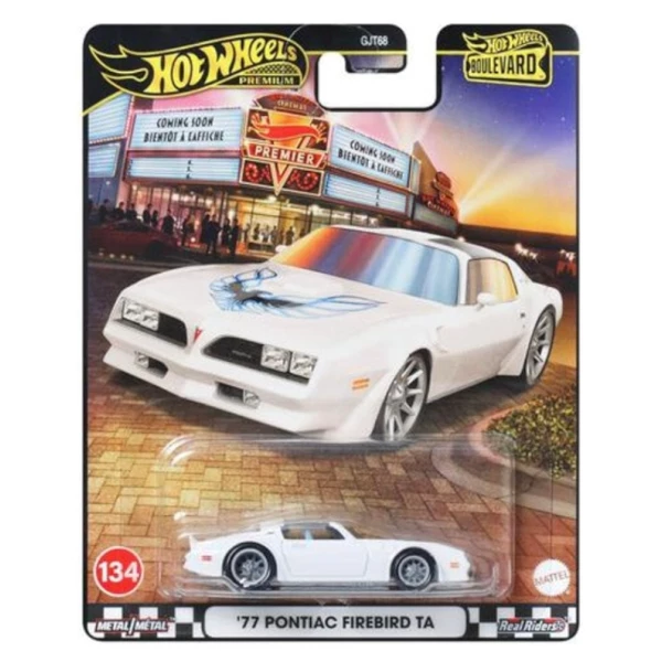 O Hot Wheels Premium '77 Pontiac Firebird TA (Código JBL28) faz parte da coleção Boulevard de 2025 (código da série GJT68). Esta miniatura é reconhecida pelo seu acabamento premium, construção em metal e pneus de borracha Real Riders™.
