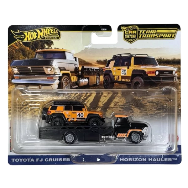 Seja para exibição em sua coleção ou para imaginar expedições épicas, o conjunto Team Transport com o Toyota FJ Cruiser e Horizon Hauler é uma peça que exala espírito de aventura e qualidade premium.