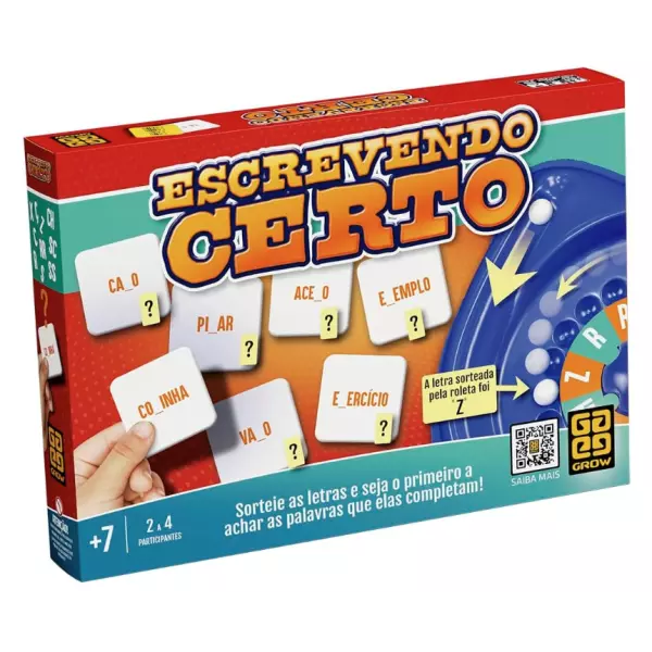 Ortografia e a parte da gramatica que apresenta os maiores desafios para o aprendizado das criancas. Atendendo a essa preocupacao dos pais, Escrevendo Certo combina conhecimentos de ortografia, rapidez e uma pitada de sorte. Durante o jogo, a bolinha sorteia uma letra ou uma combinacao de duas delas digrafo para representar determinado som. Assim que as letras sao reveladas, voce precisara usar sua astucia para ser o primeiro a encontrar a cartela correspondente e completar a palavra! Cada rodada traz uma nova emocao, ja que sera sorteada uma nova letra ou um digrafo!Voce esta preparado para esse desafio?! Sorteie as letras e seja o primeiro a achar as palavras que elas completam!
