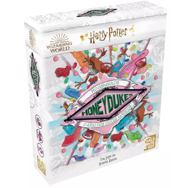 Quem é Potterhead com certeza já se pegou imaginando a Dedos de Mel, a famosa loja de doces de Hogsmeade frequentada por alunos e professores de Hogwarts. Agora, você pode trazer essa experiência mágica para sua casa com o Jogo Dedos de Mel! Com regras simples e partidas viciantes, este jogo é baseado na mecânica de Force a Sua Sorte e apresenta cartas com cinco doces mágicos diferentes, incluindo Bombons Explosivos, Sapo de Chocolate e Feijõezinhos de Todos os Sabores, entre outros. Todos os jogadores vão aproveitar essa excursão mágica e competir entre si para ver quem consegue comer a maior quantidade de doces. Mas lembre-se, aqui não tem nenhum trouxa, então vocês deverão respeitar algumas regras especiais. Estão preparados para o desafio? Desafie sua sorte, prove seu conhecimento do mundo mágico e divirta-se com amigos e familiares neste jogo encantador e viciante.