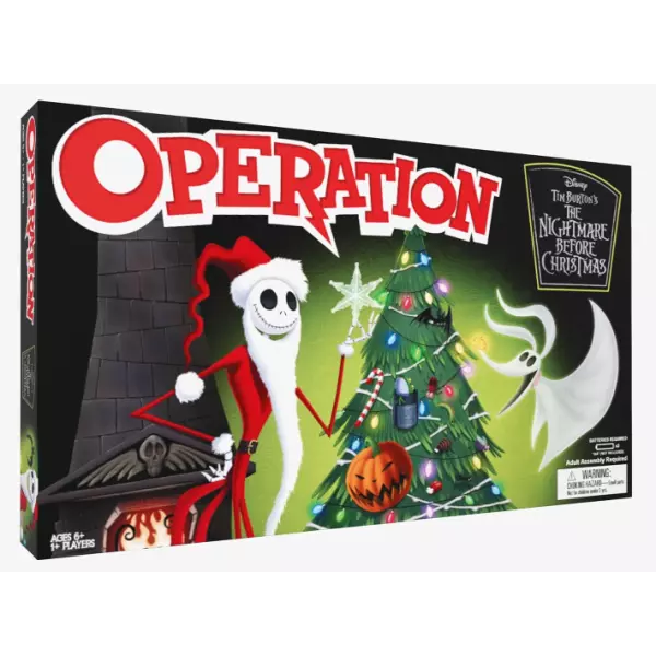 Uma Operação em Estilo Tim Burton: Em vez de ossos e órgãos, você removerá itens temáticos e divertidos, como miniaturas de bastões de doces, abóboras assustadoras, dados do Oogie Boogie, e até um pequeno Zero, o fiel cachorro fantasma de Jack! Cada "peça" é uma referência adorável ao filme.