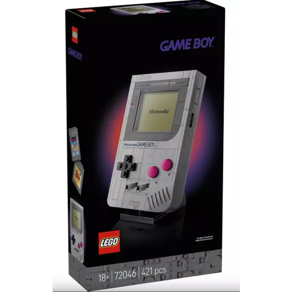 Resgate a emoção que sentiu ao jogar o Game Boy™ pela primeira vez com este kit de construção LEGO® para adultos (72046). Um presente fantástico para fãs dos jogos da Nintendo®, o conjunto colecionável inclui uma réplica construída com peças em escala quase 1:1 do sistema de jogo portátil Game Boy da Nintendo. Pressione o +Control Pad, botões A e B, SELECT e START, como no sistema real. E o modelo conta com outros detalhes icônicos do Game Boy, como o ajuste de contrates, botão de volume e entrada do Game Pak. Personalize seu monitor com Game Paks trocáveis, construídos com peças, de The Legend of Zelda™: Link's Awakening ou Super Mario Land™ do Game Boy e telas lenticulares correspondentes (ou tela inicial da Nintendo). Coloque sua criação no expositor montável para concluir uma exibição nostálgica. Encontre instruções passo a passo para este conjunto LEGO da Nintendo na caixa ou no aplicativo LEGO Builder. O conjunto contém 421 peças.