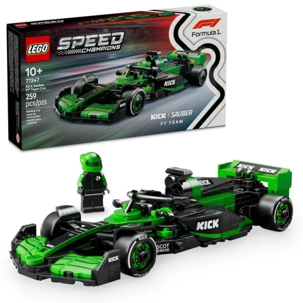 O carro de F1 inclui um cockpit que abre levantando a barra halo, uma asa traseira, suspensão duplo A, adesivos de patrocinadores e pneus traseiros largos estampados com “Pirelli”. O carro de corrida para construir também inclui uma minifigura de piloto com uniforme da KICK Sauber F1 Team e um capacete alado para colocar dentro do cockpit.