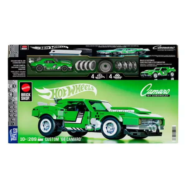 Acelere fundo com este modelo montável do Camaro Custom ’68, em escala 1:32, da Mattel Brick Shop! Este kit cheio de detalhes inclui adesivos para personalização, uma placa exclusiva e um carrinho metálico combinando. Descubra todos os modelos da linha Speed Series™ e monte sua coleção!