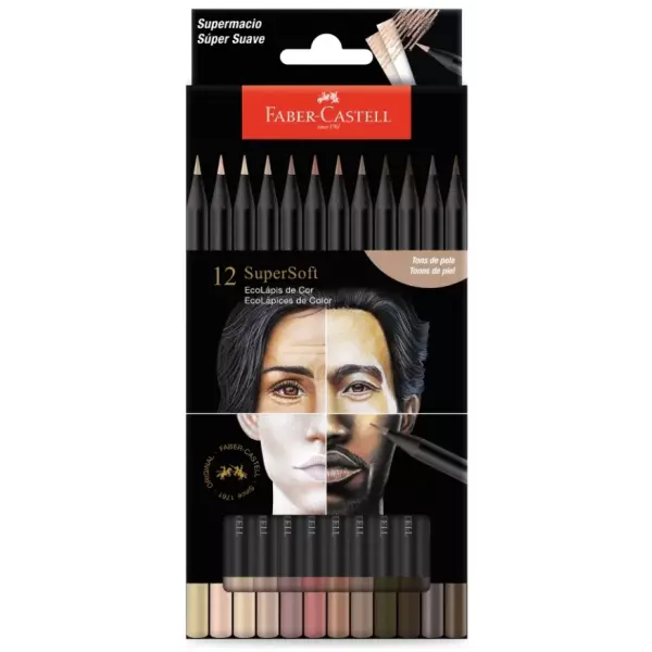 A família SuperSoft está de cara nova! São 12 tons de pele que valorizam a diversidade étinica-racial. Com mina super macia, cores mais vivas e excelente cobertura, pinta papéis claros e escuros. Selo de originalidade mostrando o pioneirismo e design exclusivo Faber-Castell. Produzido com madeira 100% reflorestada, certificada FSC® - Forest Stewardship Council®.